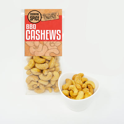 Essential Spice BBQ Cashews are a flavor explosion in your mouth. While The regular cashew lacks flavor, our BBQ Cashews are infused with the flavors of the old west BBQ. As you pop the cashews into your mouth, every bite is exciting and enjoyable, leaving you wanting more. A great healthy way of snacking. Try our entire line of Healthy Snack Foods.