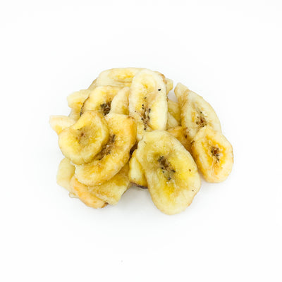 Essential Spice Banana Chips are sliced, sweetened, and dried.