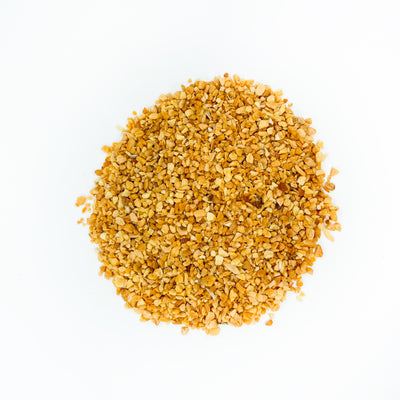 Essential Spice Minced Garlic is dried garlic that has been coarsely ground to a sand-like consistency. It's made by drying fresh garlic cloves in an oven, then grinding the cloves into garlic granules with a spice grinder. Garlic grows underground in the form of a bulb. (Its long green shoots produce flower stalks called scapes, which can be eaten.) Covered in an inedible papery skin, the bulb, or head as it is more often referred to, is comprised of individual sections called cloves, and there can be anywhere from 10 to 20 cloves per head. These cloves are themselves enclosed in a paper-like skin, which needs to be removed, and the pale yellowish flesh within is the part of the garlic that is used in cooking and can be cut in a variety of ways.