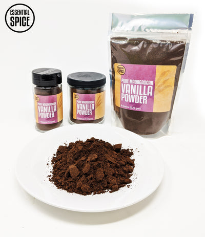 Essential Spice Gourmet Madagascar Vanilla Powder is made from 100% Madagascar Vanilla Beans that have been ground to a fine powder.