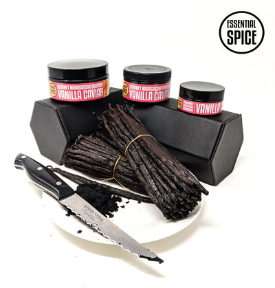 Essential Spice Vanilla Caviar is made from the seeds and pulp of the finest Madagascar Bourbon Vanilla Beans. Made with you in mind, there is no need to cut and scrape the beans yourself. Add our Vanilla Caviar to your favorite dishes for an exotic and aromatic experience unlike anything else.ÂÂ