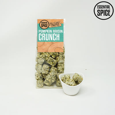 Essential Spice Pumpkin Raisin Crunch is somewhat like peanut crunch or peanut brittle, but with Pumpkin Seeds and Raisins! Crunchy roasted fruits and nuts are smothered in a smooth and sweet coating. This is a wonderful treat to enjoy around the holidays or really anytime of year. It’s irresistible, crunchy and delicious! Try our entire line of Healthy Crunch Snacks!