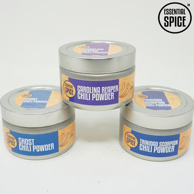 Three of the hottest chilies in the world in powder form. If you like adding extreme HEAT to your dishes, this is the pack for you. Containing 3.5 oz Spice Tins of Carolina Reaper, Trinidad Scorpion, and Ghost Pepper Powders, the Hot, Hot, Hot Chili Powder Pack will have you sweating.ÂÂÂ